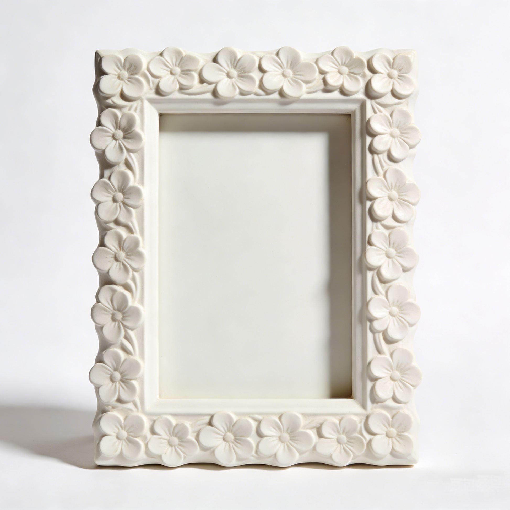 3D Flower Relief White Photo Frame, premium ceramic with delicate 3D floral relief. Size: 18×23cm (7×9inch). Elegant flower design, ideal for wedding photos and feminine decor.