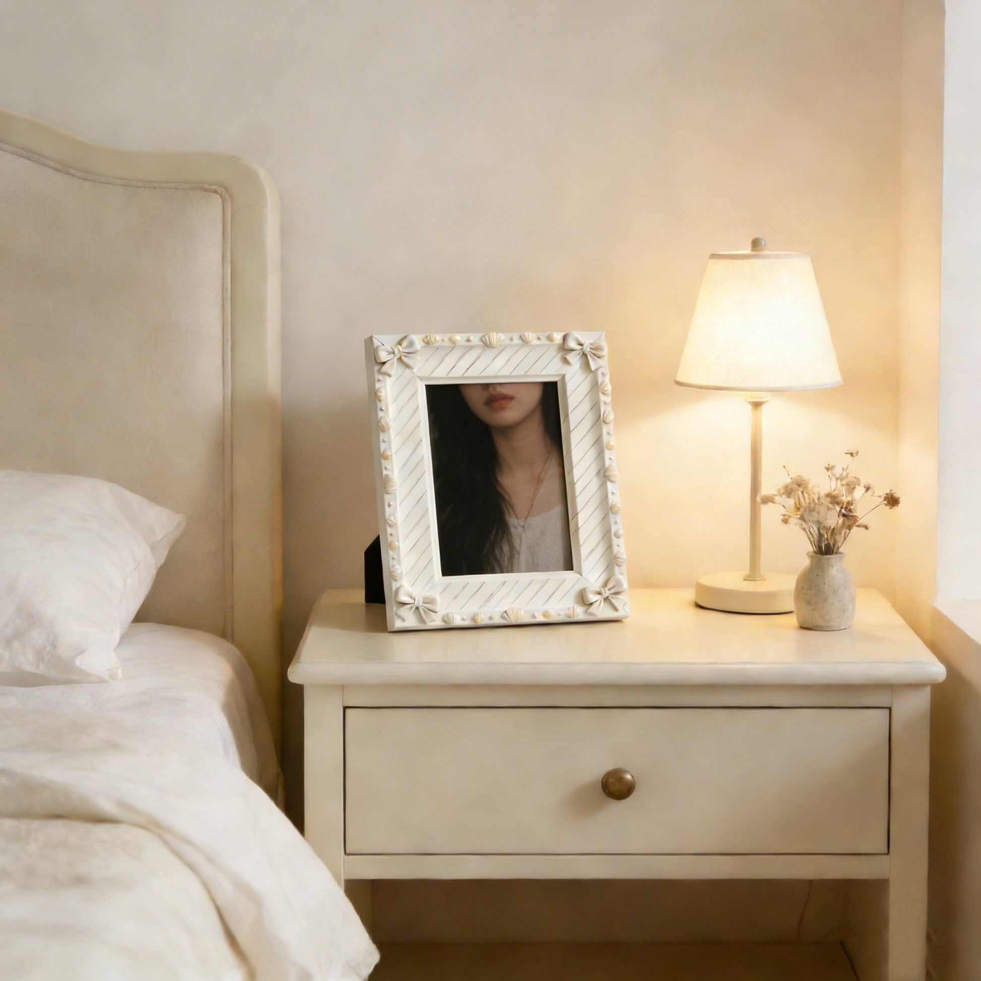 Bow & Shell Relief Diagonal Striped Photo Frame
