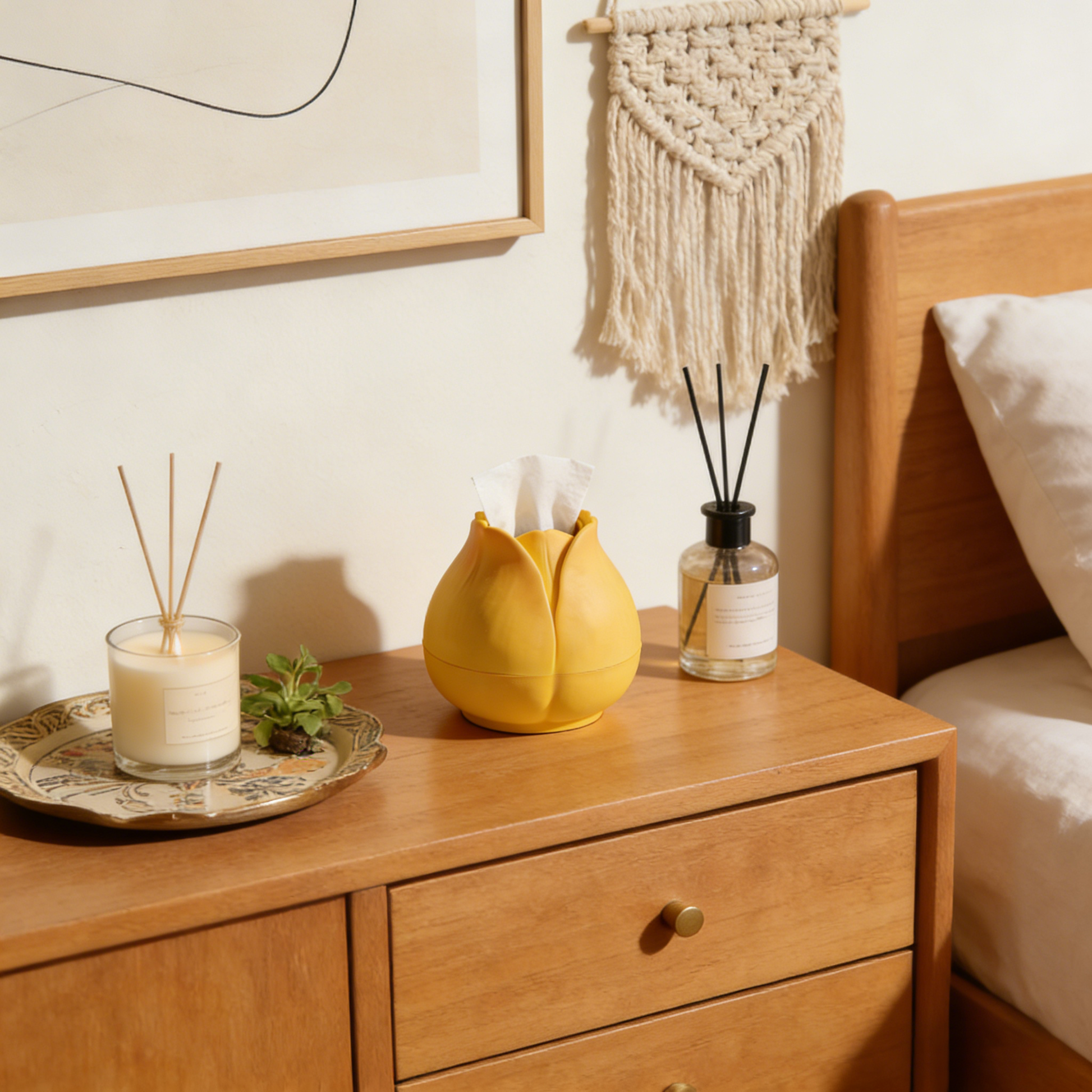 Elevate your everyday essentials with this refined tissue box, featuring an elegant tulip design that brings understated sophistication to any room. Crafted with attention to detail, its gentle aesthetic complements modern and traditional décor alike. The sturdy construction ensures reliable functionality while maintaining a graceful presence on your nightstand, desk, or living space. A subtle yet impactful accent piece that transforms a practical necessity into a decorative statement.