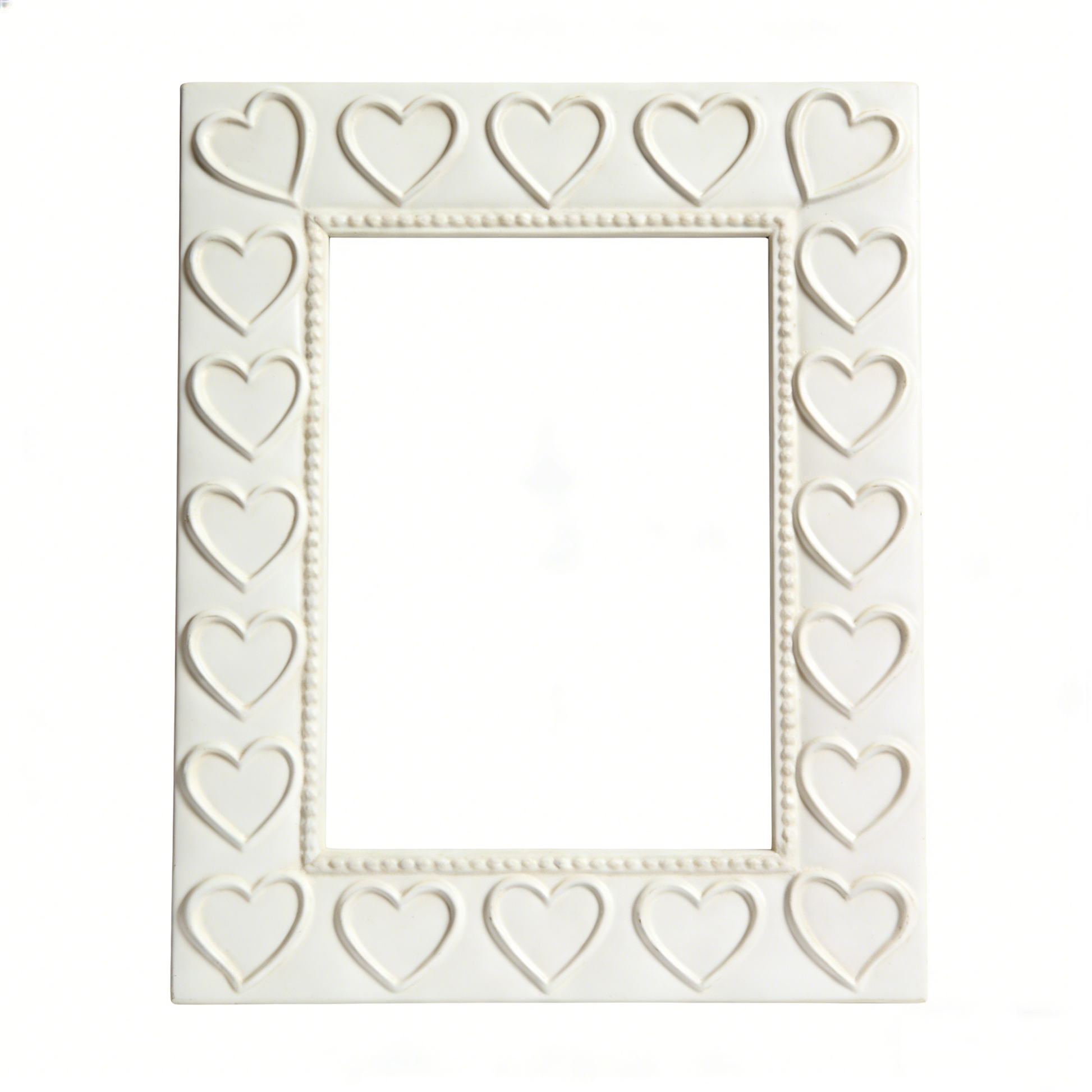 Heart Relief White Photo Frame, delicate white ceramic with 3D heart relief. Size: 18×23cm (7×9inch). Romantic heart design, ideal for wedding, couple photos and bedroom decor.