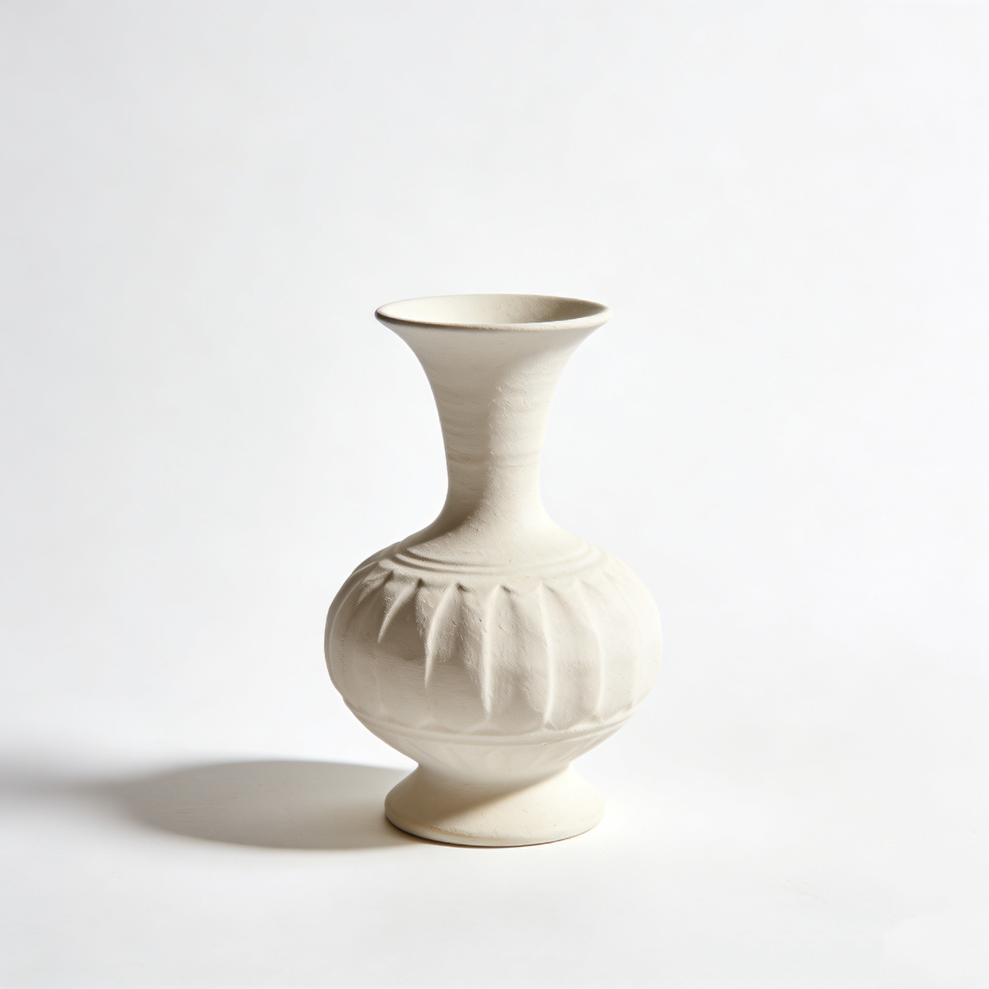 Minimalist Plain Melon Ridge Pattern Rough Pottery Vase